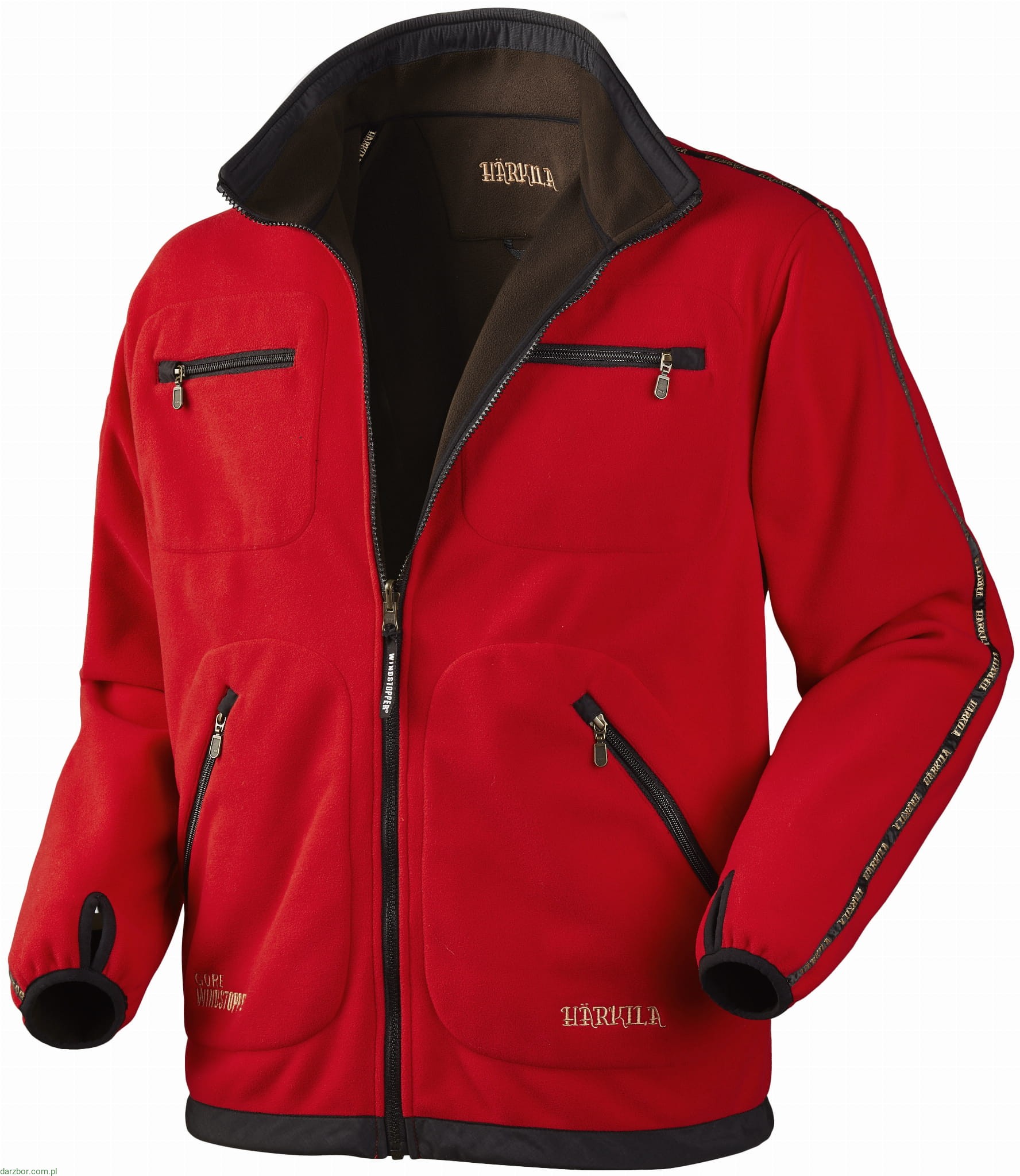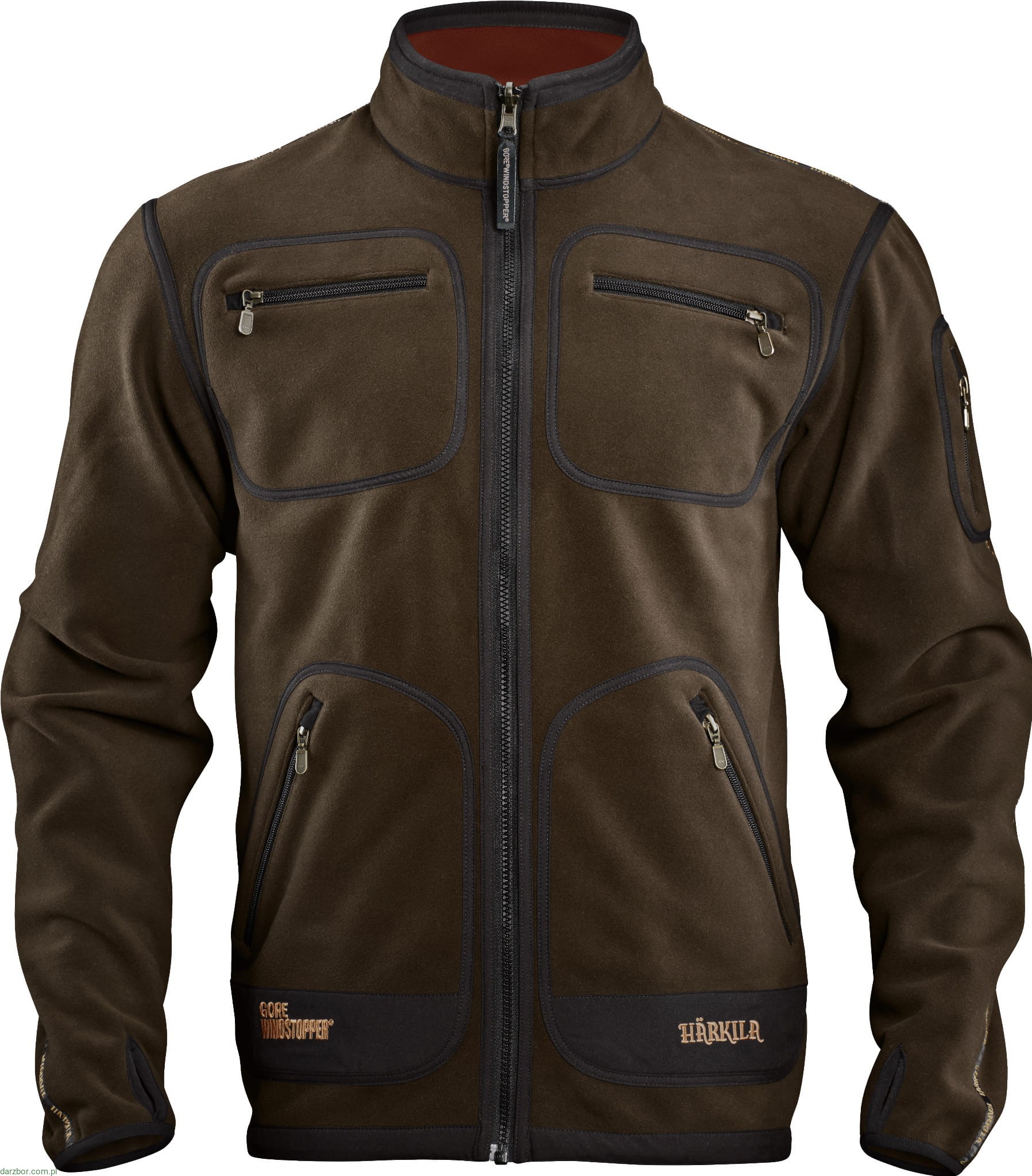 Kurtka polarowa Kamko ma dwie kieszenie na piersi i dwie skośne kieszenie z przodu, wszystkie zapinane na zamek. Posiada również zapinaną na zamek kieszeń w górnej lewej części rękawa.