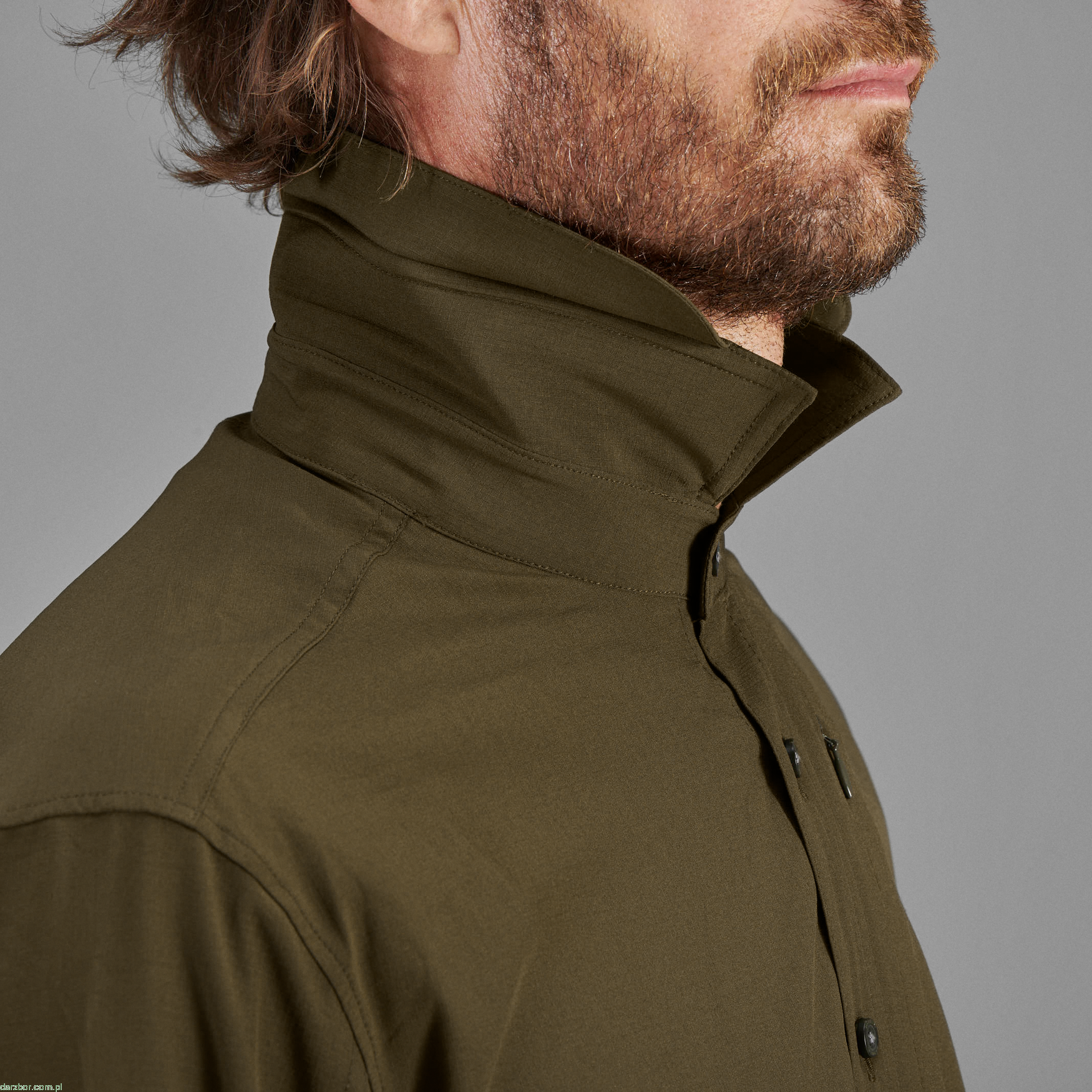 Koszula posiada podwójny, składany kołnierzyk, który można całkowicie podnieść, aby chronić szyję przed słońcem.