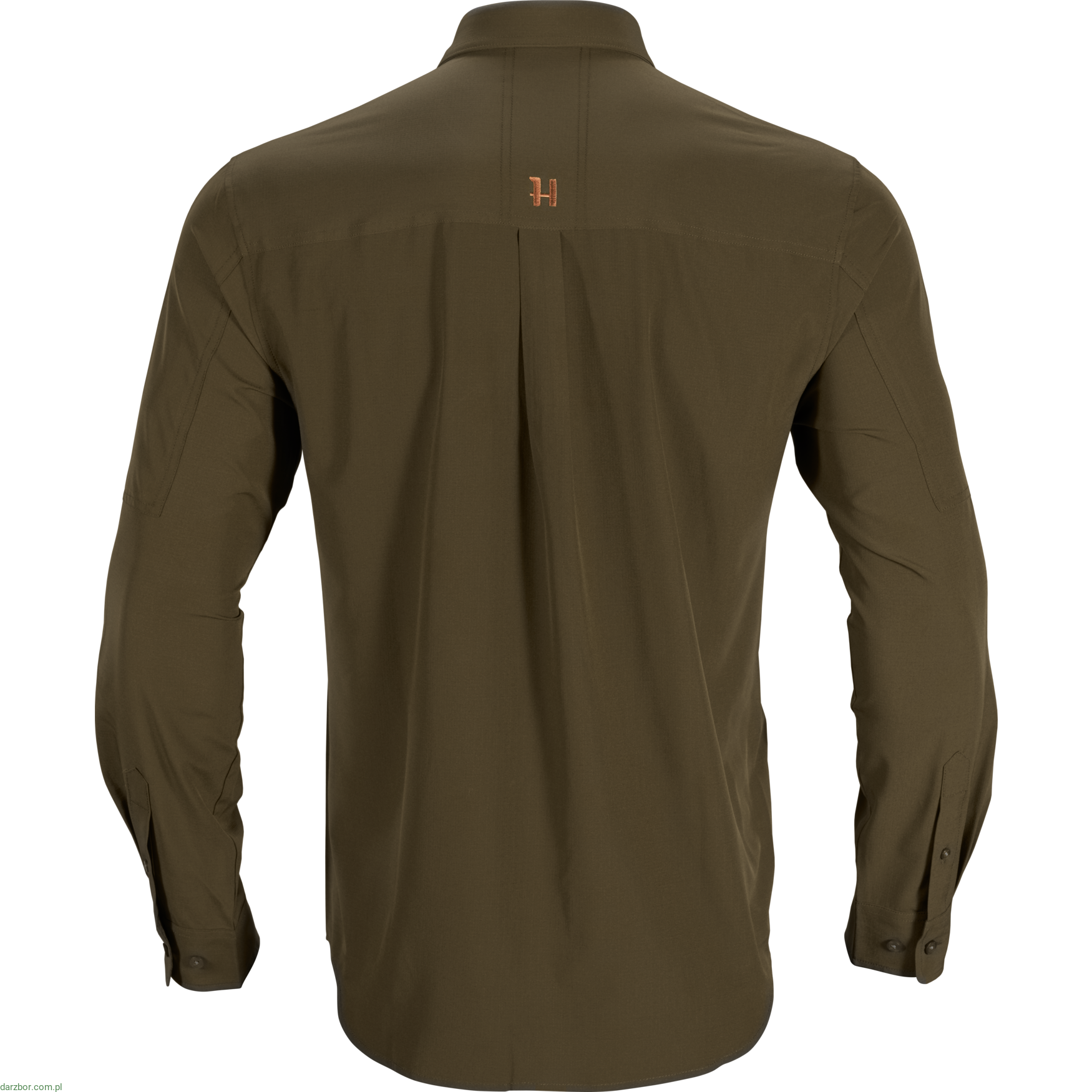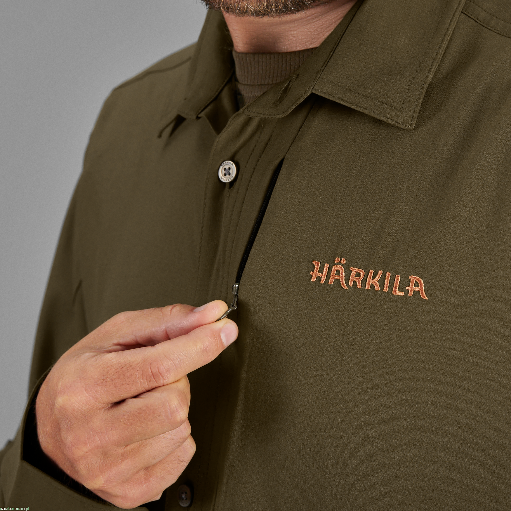 Koszula męska z długim rękawem Harkila Trail, jest wykonana z elastycznego, przewiewnego materiału, który dobrze odprowadza wilgoć. Pod pachami znajdują się wzmocnione otwory wentylacyjne. Krój lekko zwężany. Zapinana na guziki.