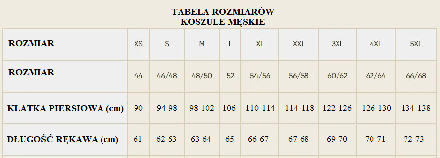 Koszula posiada tradycyjne zapięcie na guziki oraz mankiety z dwoma guzikami. Na lewej piersi znajduje się kieszeń.