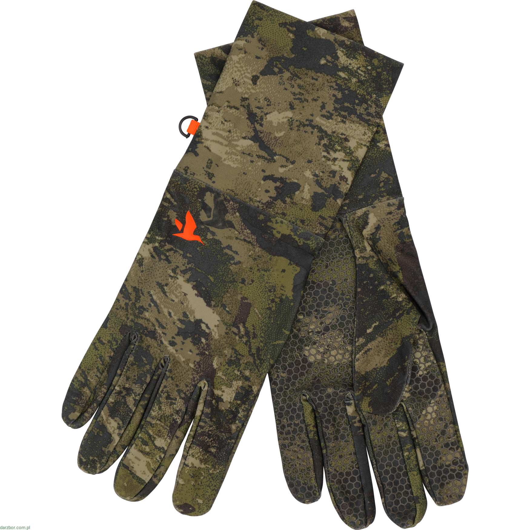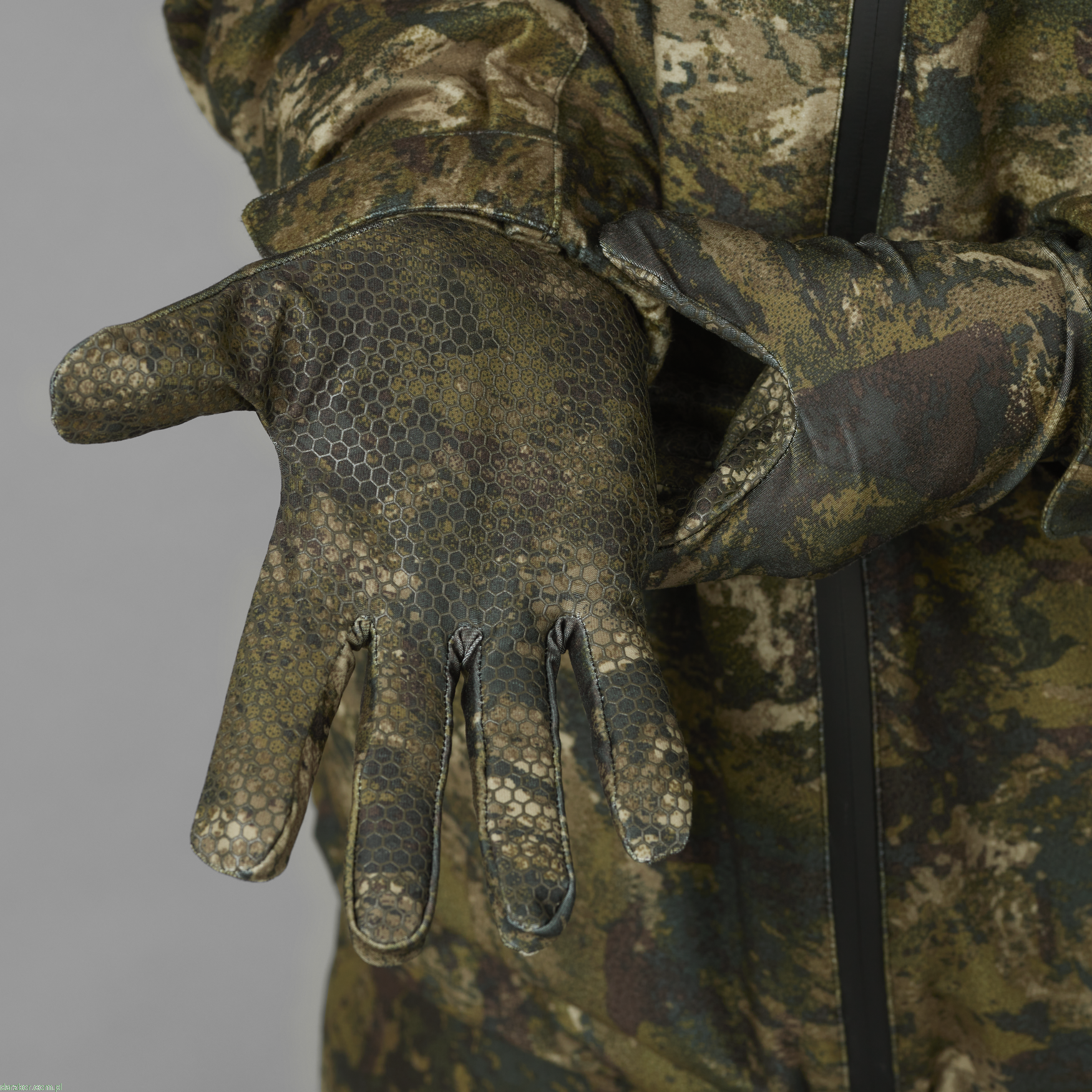 Rękawice Scent Control Camo to ściśle przylegające, bardzo ciche, rozciągliwe rękawice z gumowanymi dłońmi, które zapewniają dobry chwyt broni palnej. Rękawice są w kamuflażu InVis firmy Seeland, który został zaprojektowany tak, aby działał przez wszystkie pory roku, a materiał jest poddawany obróbce kontrolującej zapach aby zamaskować twoją obecność w lesie.