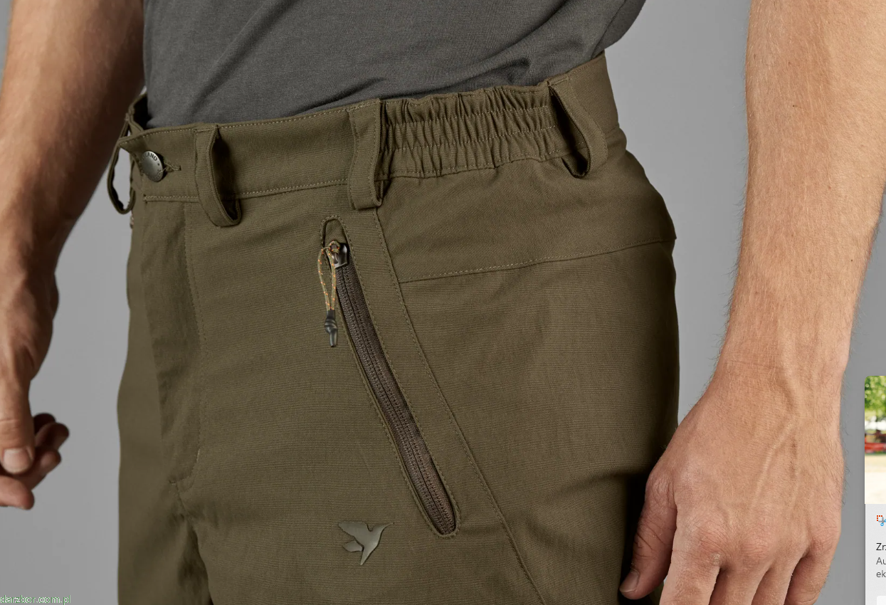 Spodnie posiadają cztery kieszenie: dwie na udach i dwie na biodrach. Po zapięciu kawałek materiału zakrywa główkę zamka błyskawicznego, zapobiegając zaczepianiu się o cokolwiek.